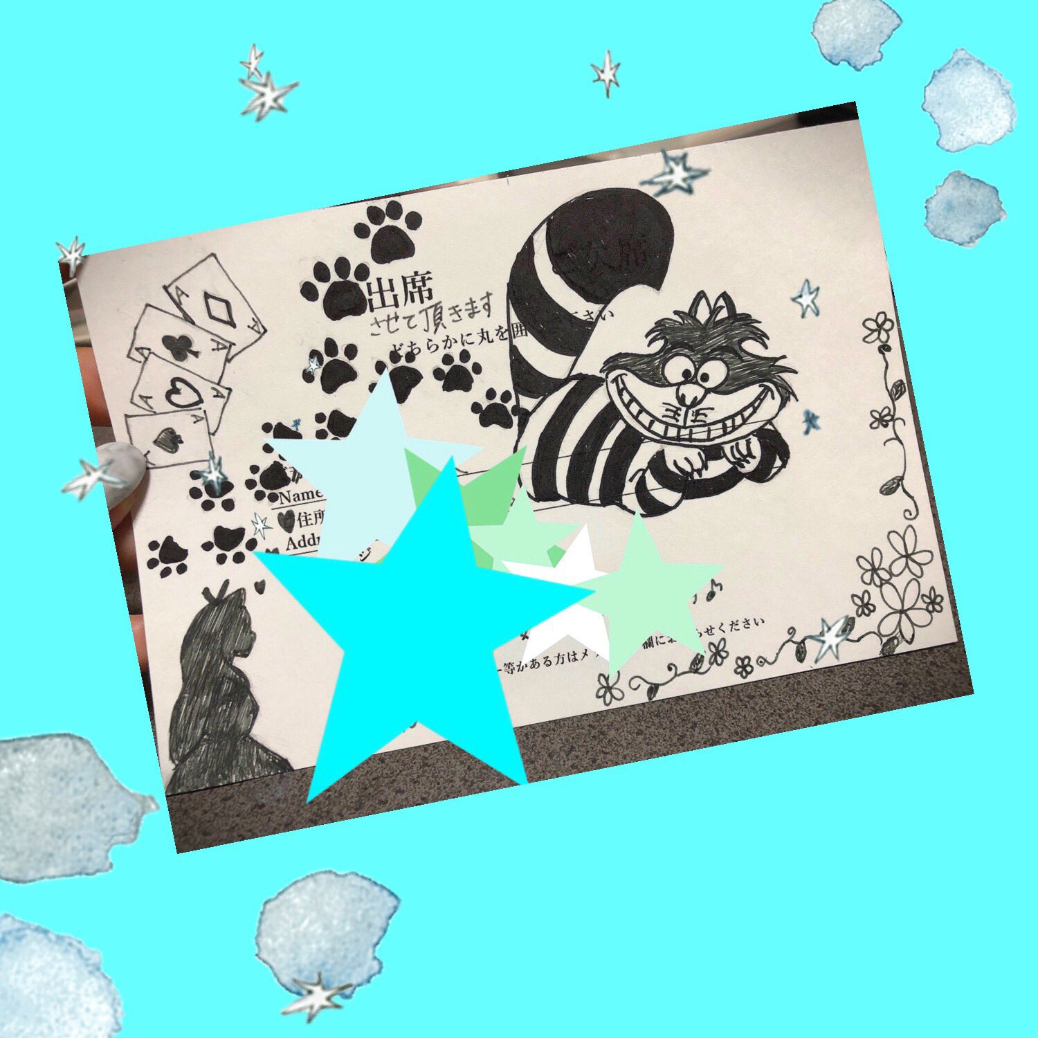 Tomo そういえば後輩の結婚式の返信イラスト書いた チェシャ猫めっちゃ好きだからメインでw 結婚式招待状の返信 返信 イラスト 不思議の国のアリス チェシャ猫 ディズニー アリスシルエットイラスト T Co Ddx2id90so Twitter